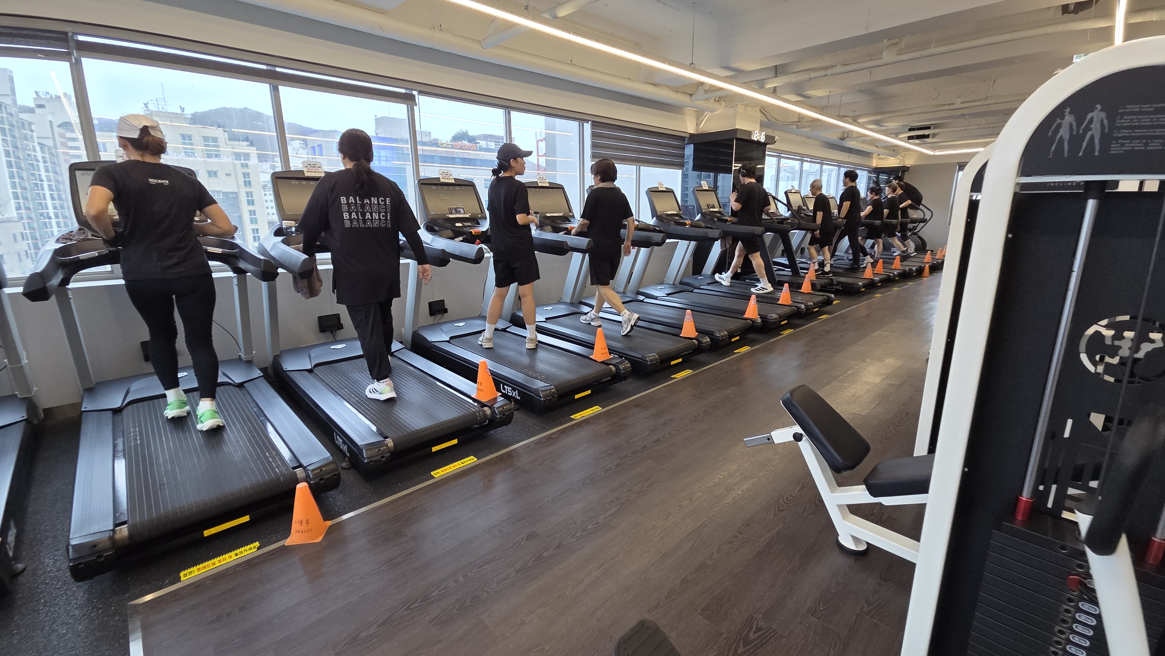 보통 지하실 특유의 꿉꿉함이 있는 곳들이 많은데, 여기는 지상 7층 뷰를 보며 '천국의 계단'을 탈 수 있는 뷰 맛집입니다. 운동하면서 탁 트인 전경을 보니 스트레스가 확 풀리는 기분이었네요.